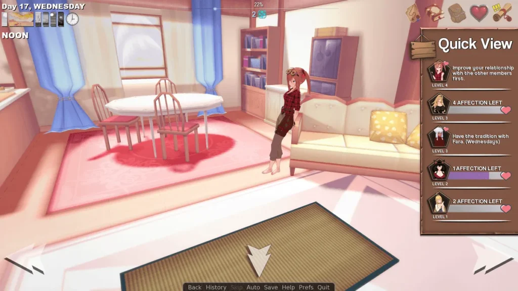 | Rebecca | Town Tavern | Complete the introductory “A New Beginning” questline and help resolve her initial personal conflict. | Trust, Friendship, Intimacy, Commitment |