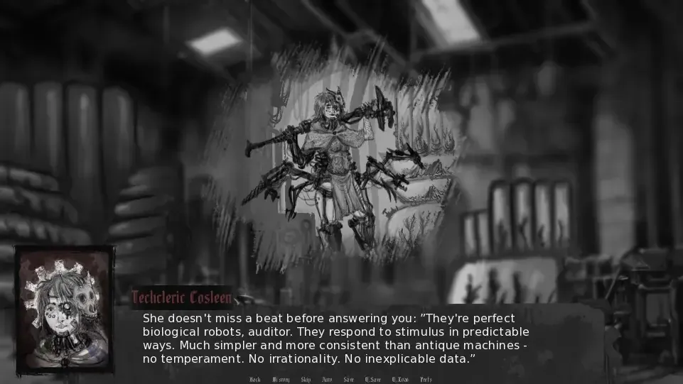 While the writing does the heavy lifting, the presentation completes the immersion. The art style perfectly complements the tone. Character portraits are beautifully detailed, conveying personality through a subtle sneer, a pious gaze, or a look of desperate ambition. The UI is designed to look like a grimdark data-slate, all dusty parchment tones, gothic icons, and stark red rejection stamps. 🖋️