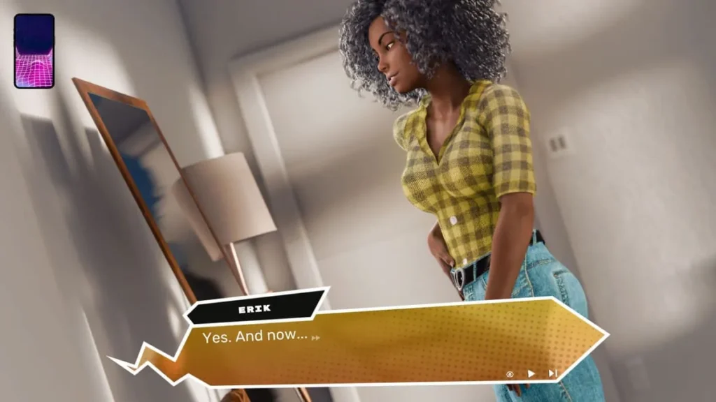 If you’re wondering about the Sex, Camera, Action! gameplay, think of it as a classic point-and-click adventure fused with rich visual novel decision-making. You explore detailed, static environments—a studio office, a cluttered apartment, a sleek nightclub—by clicking to move and interact. 🔍