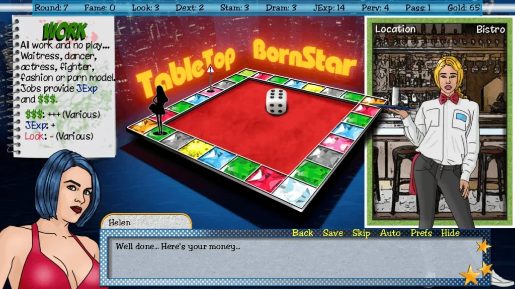 Imagine stepping into the neon-lit underbelly of 1999 Hollywood, where every dice roll and card flip could launch a star or plunge her into scandal. That’s the thrill of TableTop BornStar, the captivating adult visual novel blending tabletop mechanics with steamy storytelling. As a washed-up talent agent under house arrest, you guide young Mary Jane from country girl dreams to fame—or corruption. I’ve spent hours rolling dice, building stats like Dex, Stam, Drama, and Perv, and uncovering intimate scenes that keep you hooked. This guide shares my journey, tips to master the game, and why it’s a must-play for fans of strategic adult adventures. Ready to shape her destiny?